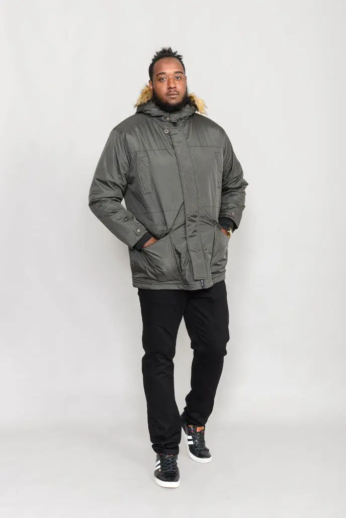 Khaki Parka jakke m. hætte og aftagelig pels (TALL) - D555