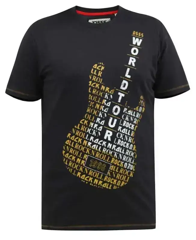 Forvasket sort T-shirt med guitar silhuet og "WORLD TOUR" print (TALL) - D555