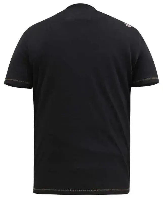 T-shirten er med rund hals og der er gyldne stikninger i bunden af T-shirten samt på ærmerne. Bagpå højre skulder er et lille D555 broderi. Nederst på T-shirten er der endvidere et lille mærke påsyet med D555.