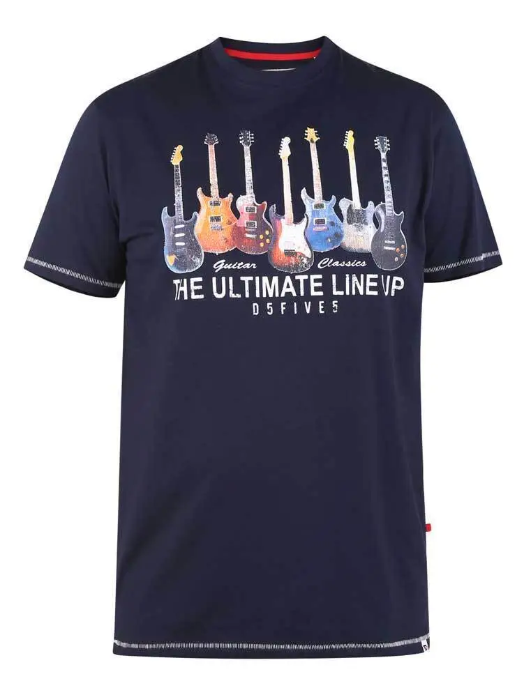 Navyblå T-shirt med "guitar" tryk fra D555 til den høje mand. Den navyblå farve er så mørk, at den næsten går over i den sorte farve.