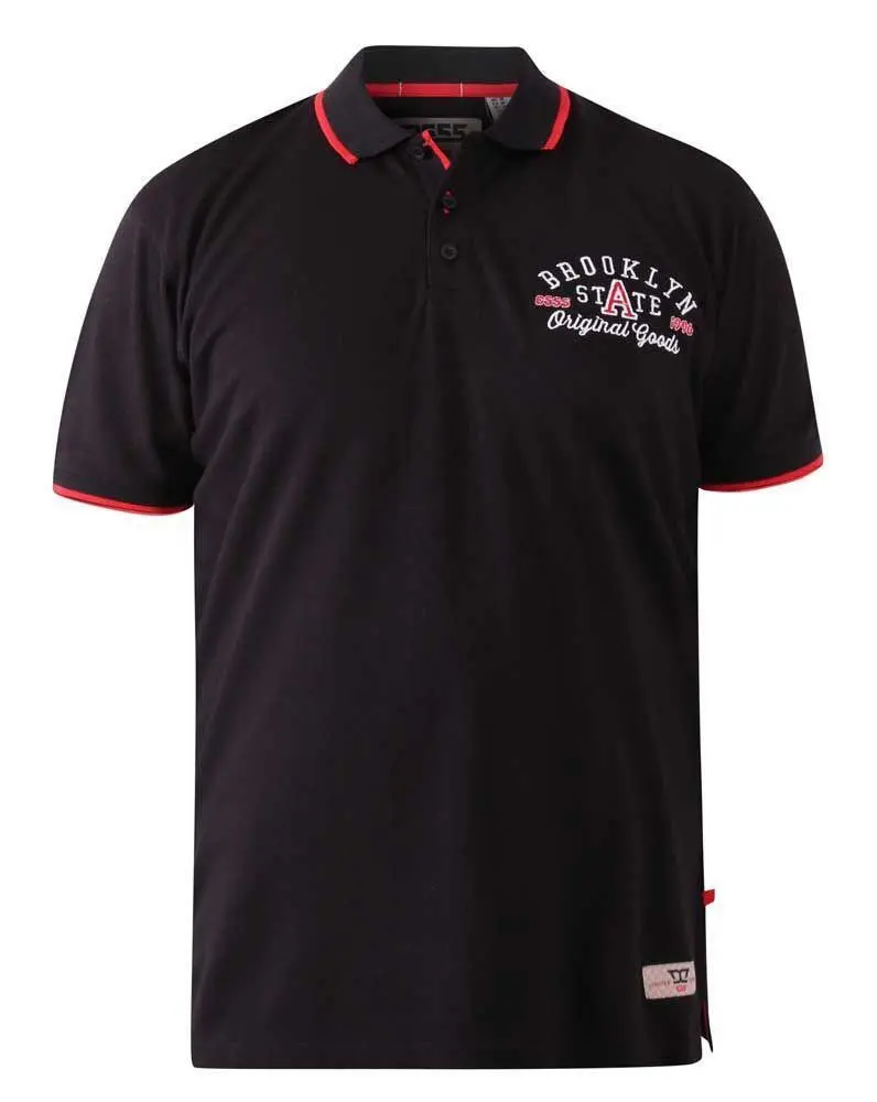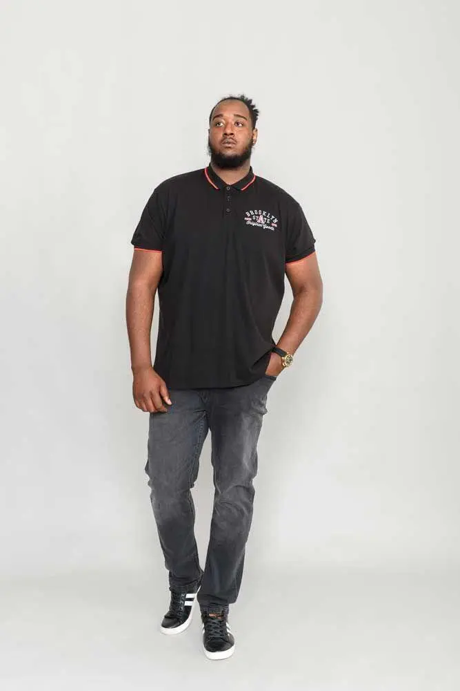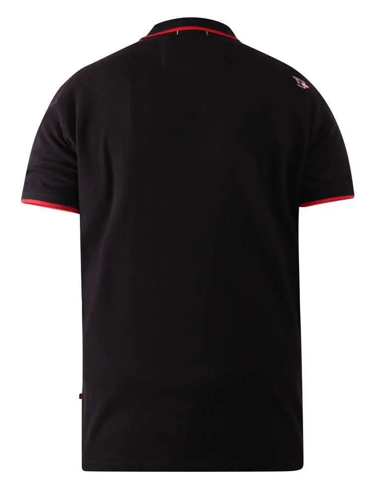 Sort pique polo med røde kontraststriber på kraven og ærmerne fra D555 med ekstra længde til den høje mand.