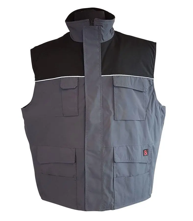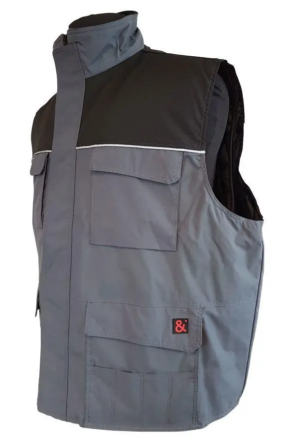 Denna fodrade kolgrå/svarta arbetsväst kommer från en stor tillverkare där kvaliteten står i fokus. En robust väst för en kall höst och vinter.