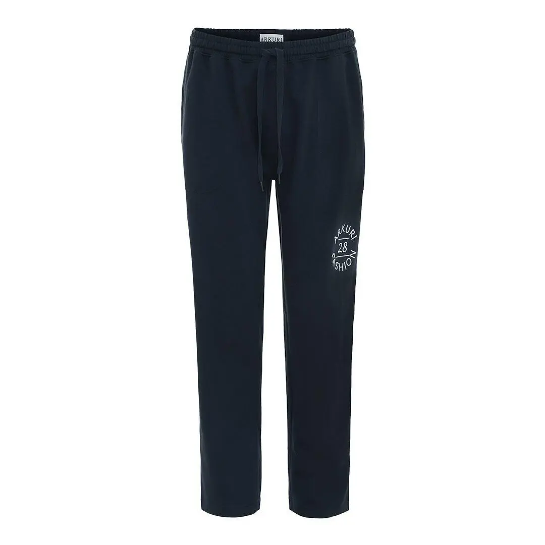 Mörkblå joggingbyxor med broderi - ARKURI Fashion