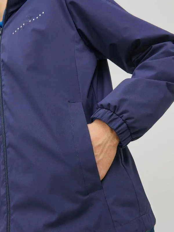 Marinblå övergångsjacka från Jack & Jones. Jackan har hel dragkedja samt huva med dragsko.