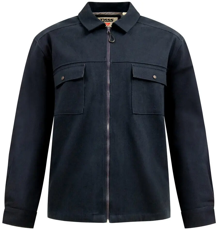 Mörk marinblå overshirt från D555 med genomgående dragkedja och två bröstfickor med klaff och knappstängning. Modellen har klassisk krage, långa ärmar och ett enkelt, stilrent uttryck som gör den lätt att kombinera med både jeans, chinos eller joggers. Skjortan fungerar bra som en lätt övergångsjacka eller som ett extra lager inomhus under de kyligare månaderna. Ett mångsidigt och praktiskt val för dig som föredrar en avslappnad och funktionell stil.