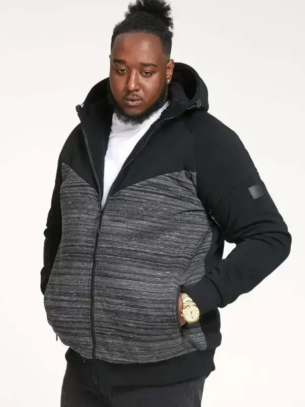 Rejäl svart/gråmelerad sweatjacka med tjockt sherpa-foder.