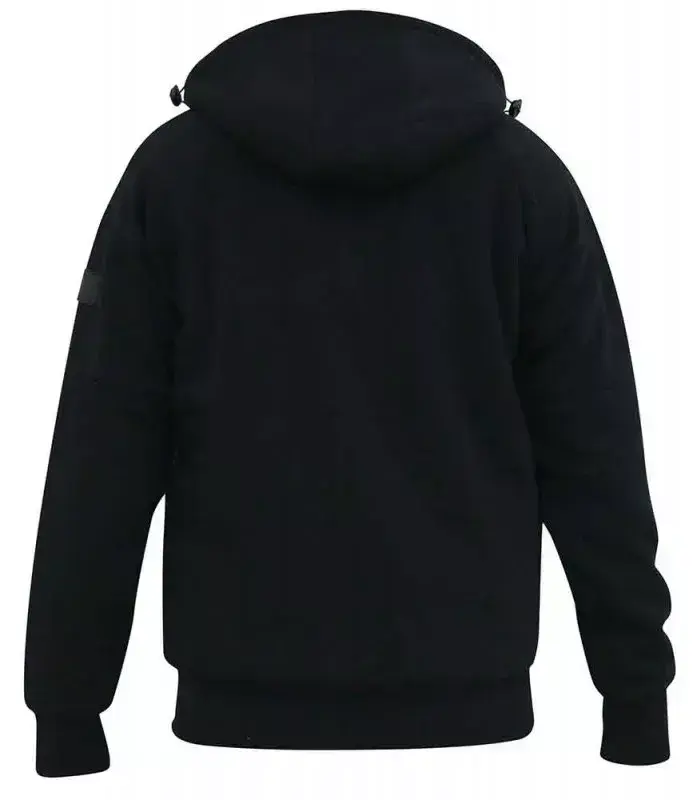 Svart sweatjacka med huva, fickor och sherpa-foder - D555