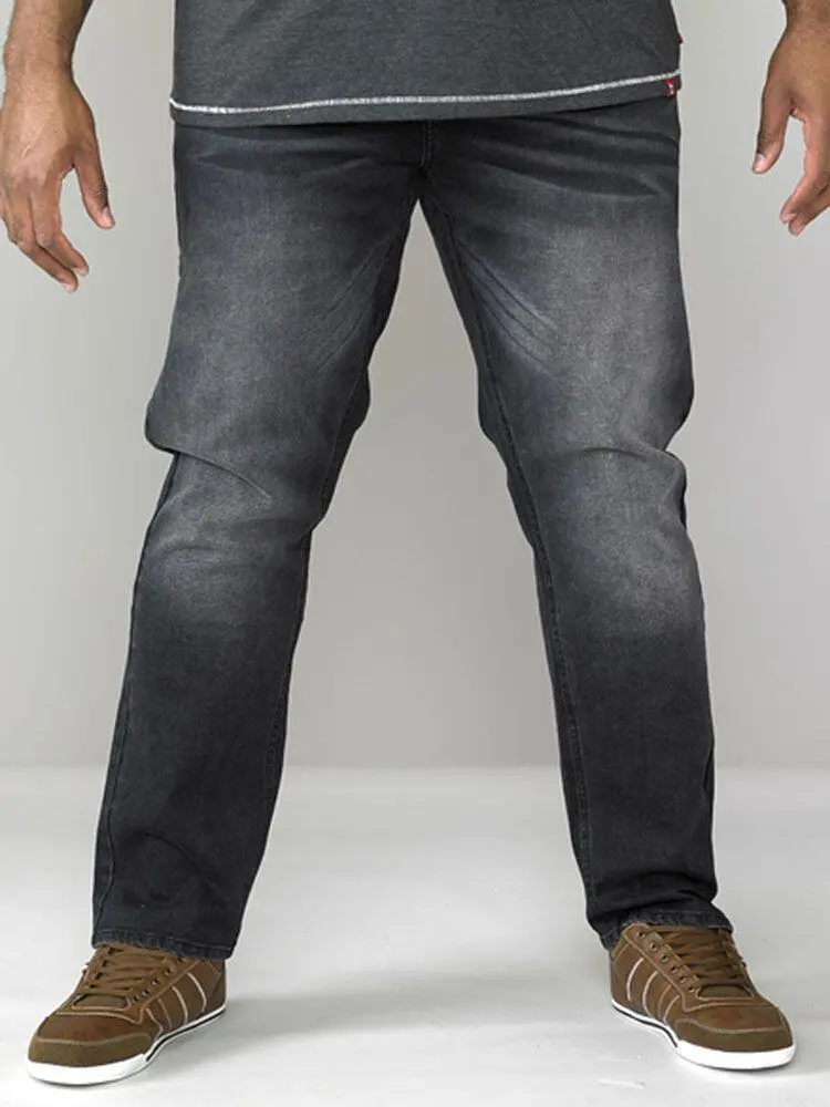 Grå jeans från D555. Dessa jeans har stretch och avsmalnande passform från knäna och nedåt.