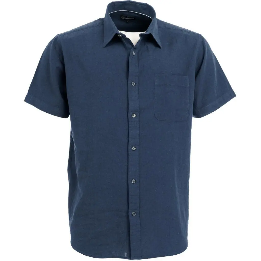 Denna kortärmade skjorta för män från Finesmekker är ett säkert kort när du vill kombinera komfort och stil. Skjortan är gjord i en lätt och luftig blandning av lin och bomull, vilket gör den perfekt för sommaren och varma dagar. Den navyblå färgen ger ett avslappnat men ändå prydligt uttryck – idealisk som en casual herrskjorta både till vardag och semester.