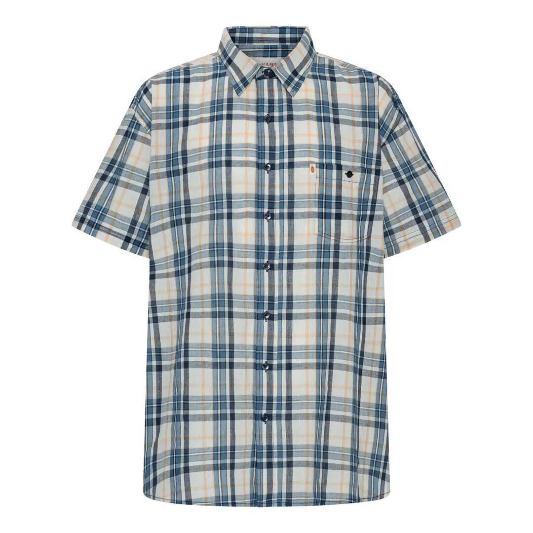 Kortärmad skjorta från KAMRO med klassiska rutor i blått, vitt och sandfärgade nyanser. En bekväm och avslappnad skjorta med vanlig krage och bröstficka – lätt att styla både till vardag och fritid. Den mångsidiga designen passar perfekt till jeans, chinos eller shorts, och färgerna ger ett fräscht, somrigt uttryck utan att bli pråligt.