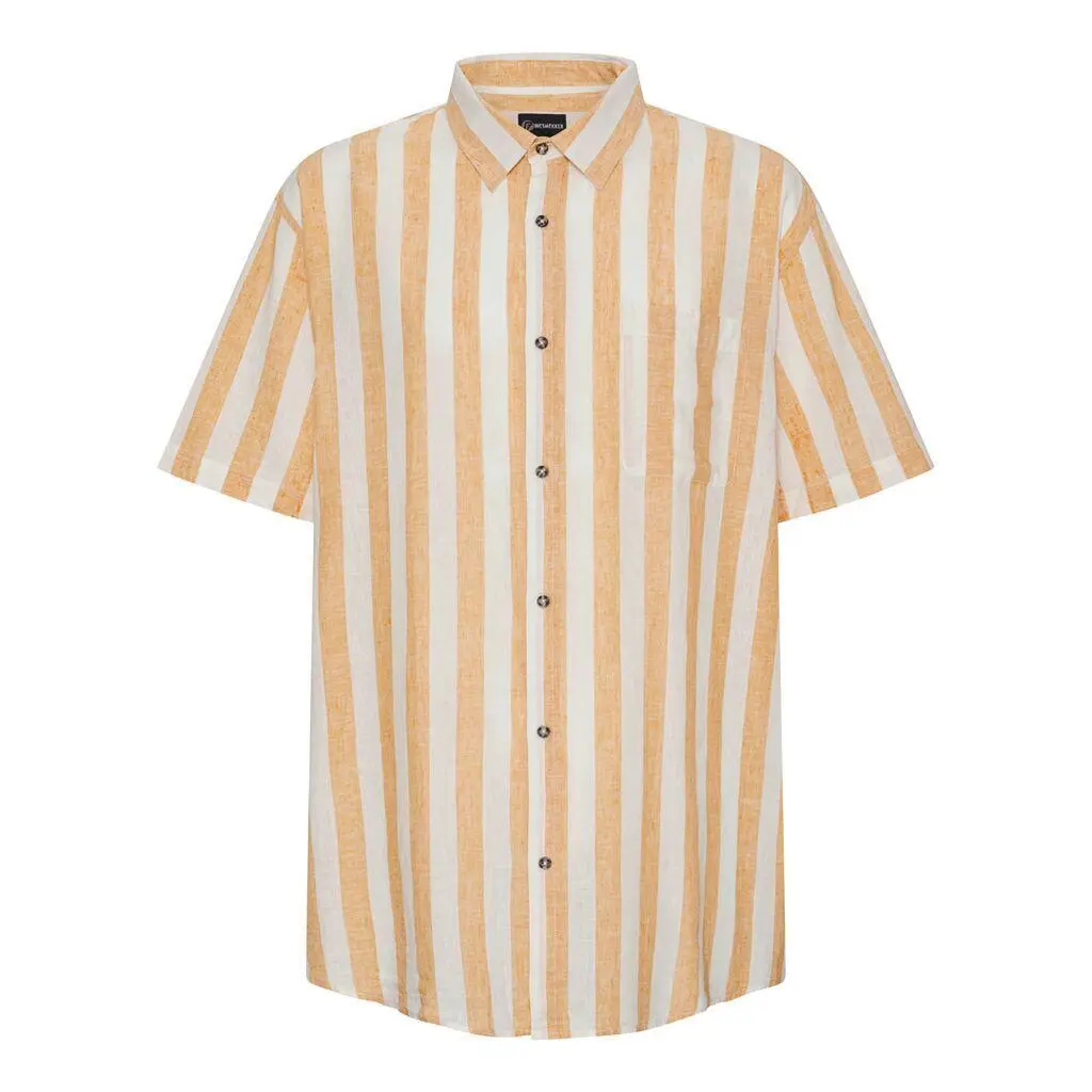 Kortärmad skjorta från Finesmekker i en ljus bas med lodräta ränder i varma orange nyanser, som ger ett fräscht och stilrent uttryck. Skjortan har en klassisk skjortkrage och genomgående knappstängning, vilket gör den lätt att styla både uppklätt och mer avslappnat.