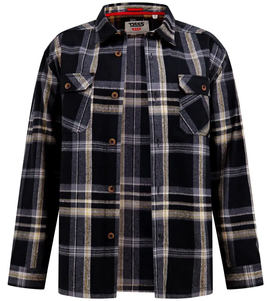 Långärmad flanellskjorta från D555 i svart, grått och beige rutor. Skjortan har klassisk krage, knappstängning och två bröstfickor med knapp. Den är tillverkad i ett mjukt och lätt borstat material som ger en bekväm känsla och lite extra värme. Kan användas både som en vanlig skjorta och som en overshirt över en t-shirt eller tröja.
