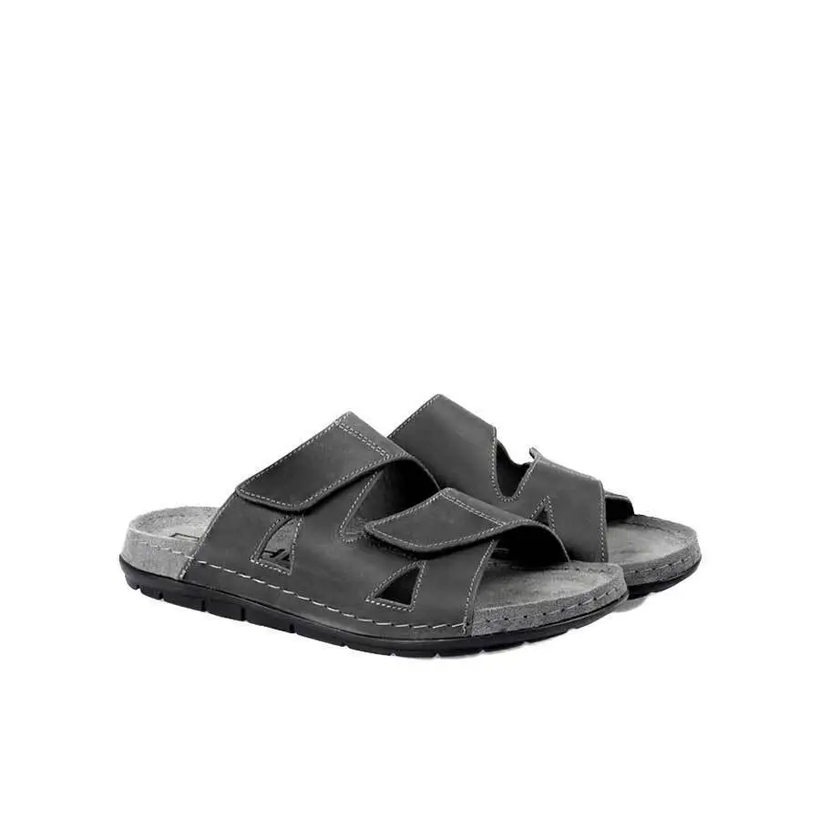 Grå herrsandaler i läder från Rohde. Sandalerna har en mjuk innersula i läder. Skorna stängs enkelt med två kardborreremmar över foten.