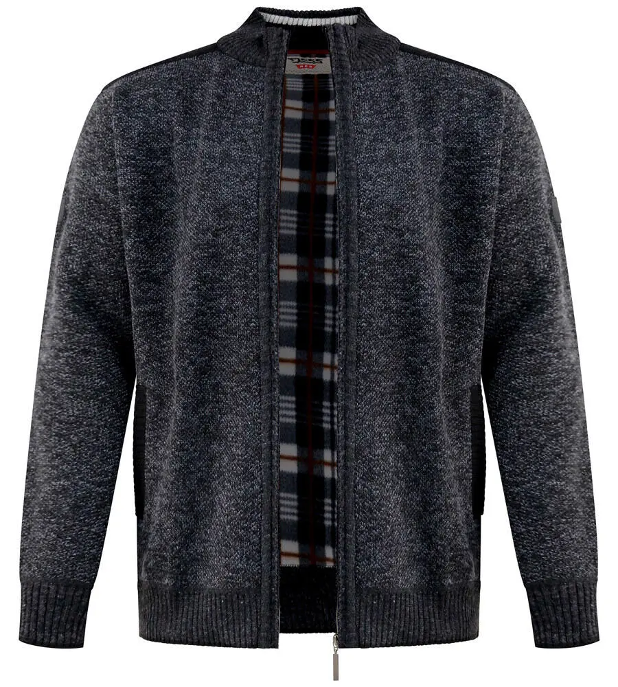 Denna stickade tröja från D555 kombinerar ett klassiskt uttryck med praktiska detaljer. Yttersidan har ett melerat, stickat utseende, medan insidan är fodrad med mjuk fleece som ger värme och komfort på kalla dagar.