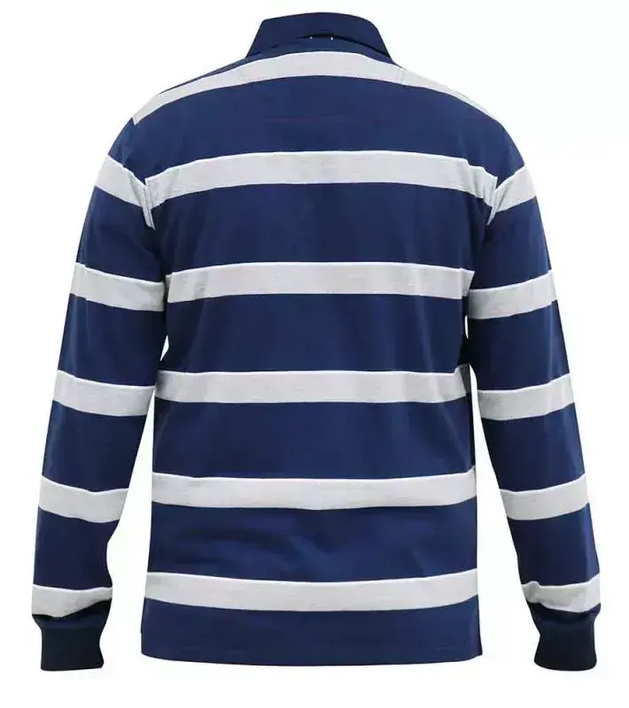 Navy/vit/grå randig rugbyinspirerad polo (L/Ä) - D555