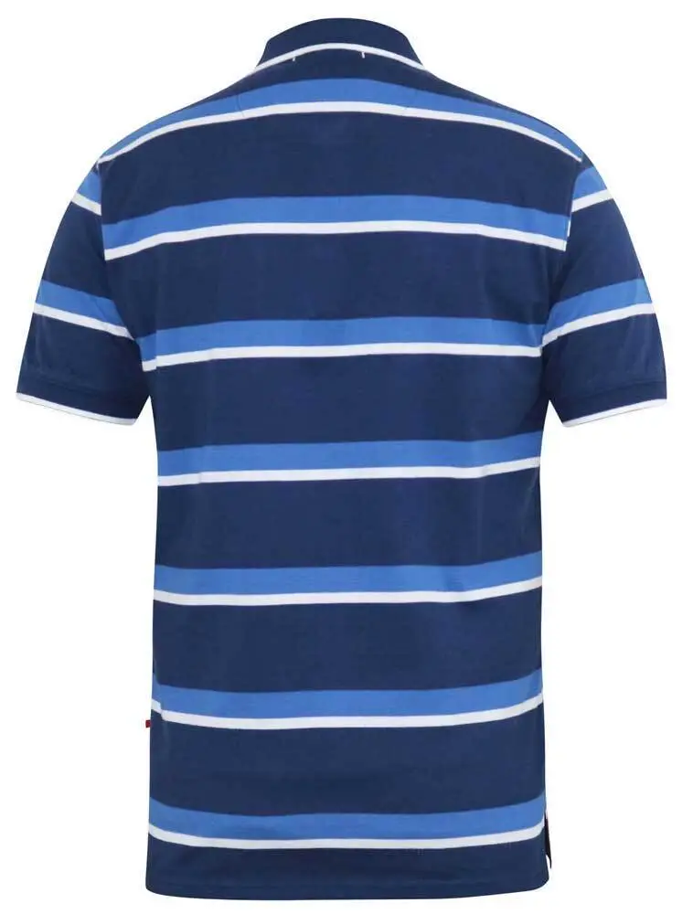 Blå och vit randig pikétröja med bröstficka - D555