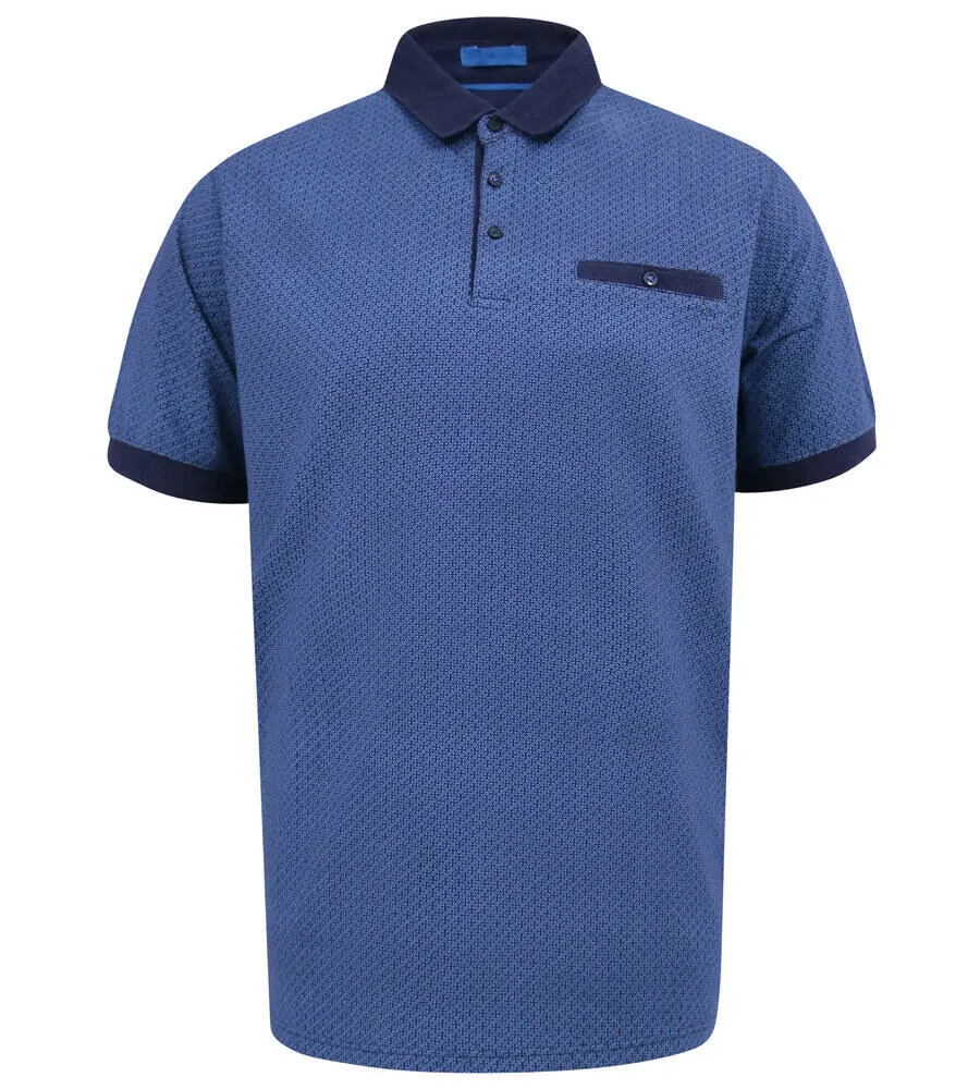 Blå pikétröja med fint mönster och bröstficka med knapp