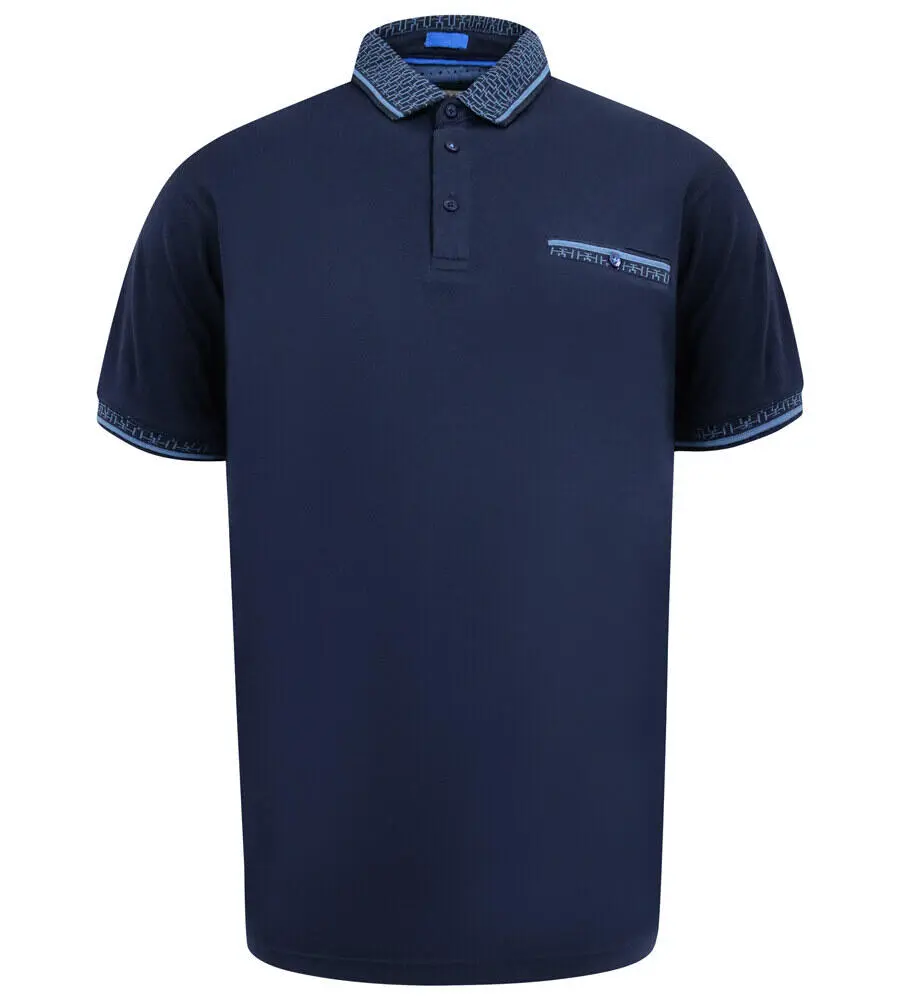 Marinblå polo från D555 i en enkel och stilren design med fina kontrastdetaljer vid krage, ärmar och bröstficka. Den klassiska polokragen och knappslutningen ger ett snyggt och välklätt uttryck, vilket gör den lätt att använda både i vardagen och till mer avslappnade, uppklädda tillfällen.