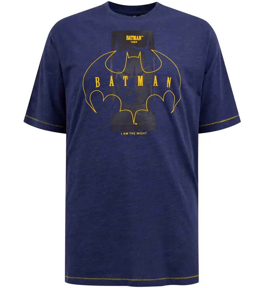 Denna blåmelerade T-shirt från D555 är ett självklart val för dig som vill kombinera komfort med ett grafiskt statement. På framsidan har den en stor gul Batman-logotyp med texten “I Am the Night”, som ger tröjan ett markant och ikoniskt uttryck.