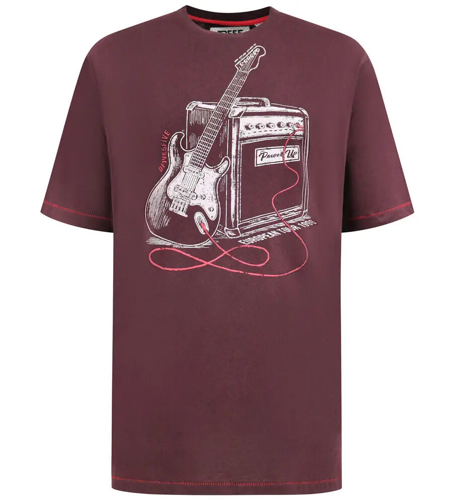 Denna bordeaux T-shirt från D555 är ett självklart val för dig som vill kombinera komfort med ett rått uttryck. Framsidan pryds av ett stort vitt tryck av en elgitarr och en förstärkare med texten “Power Up”.