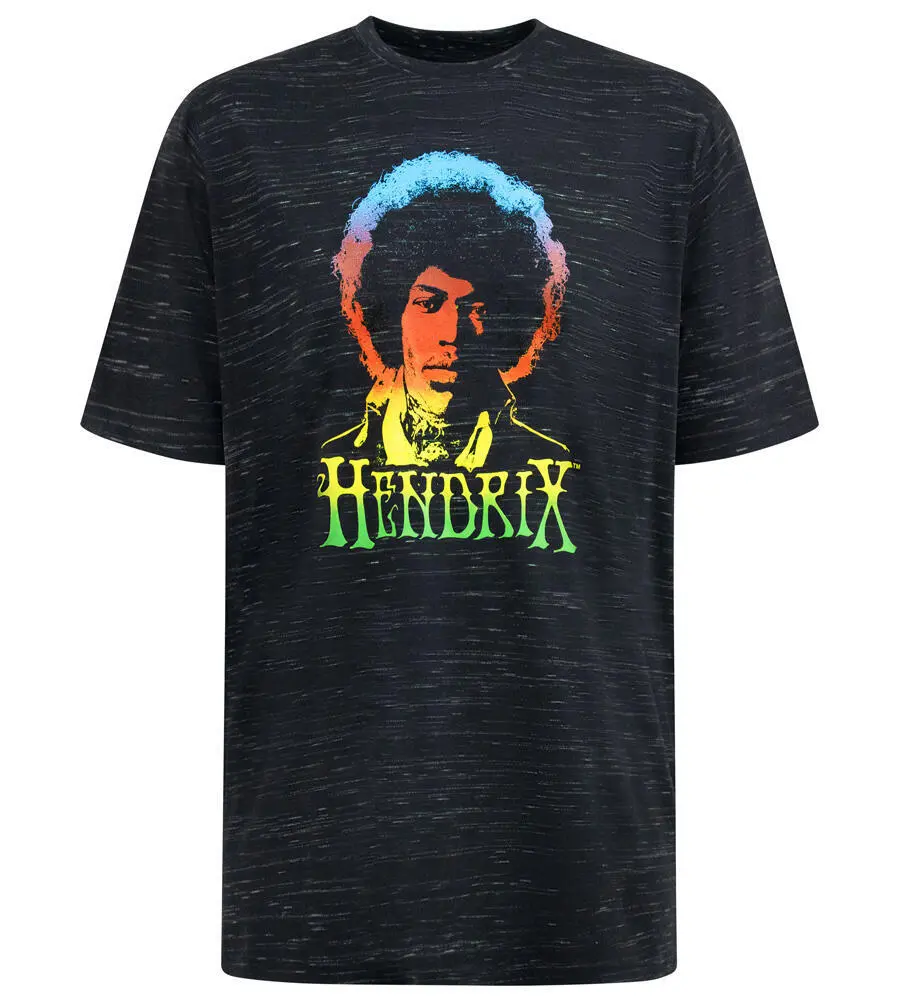 Svart melerad T-shirt med "Hendrix"-tryck - D555