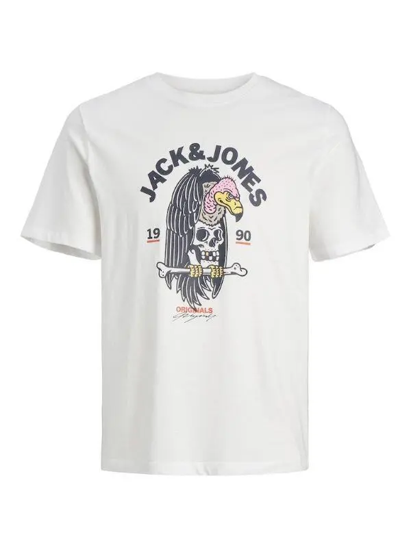 Vit T-shirt med gam och skalleprint - Jack & Jones