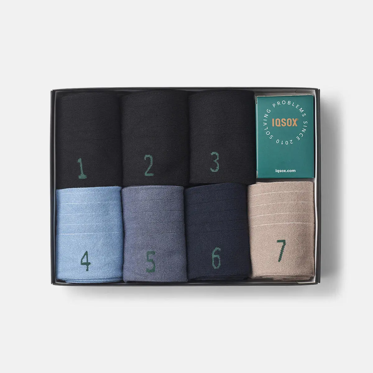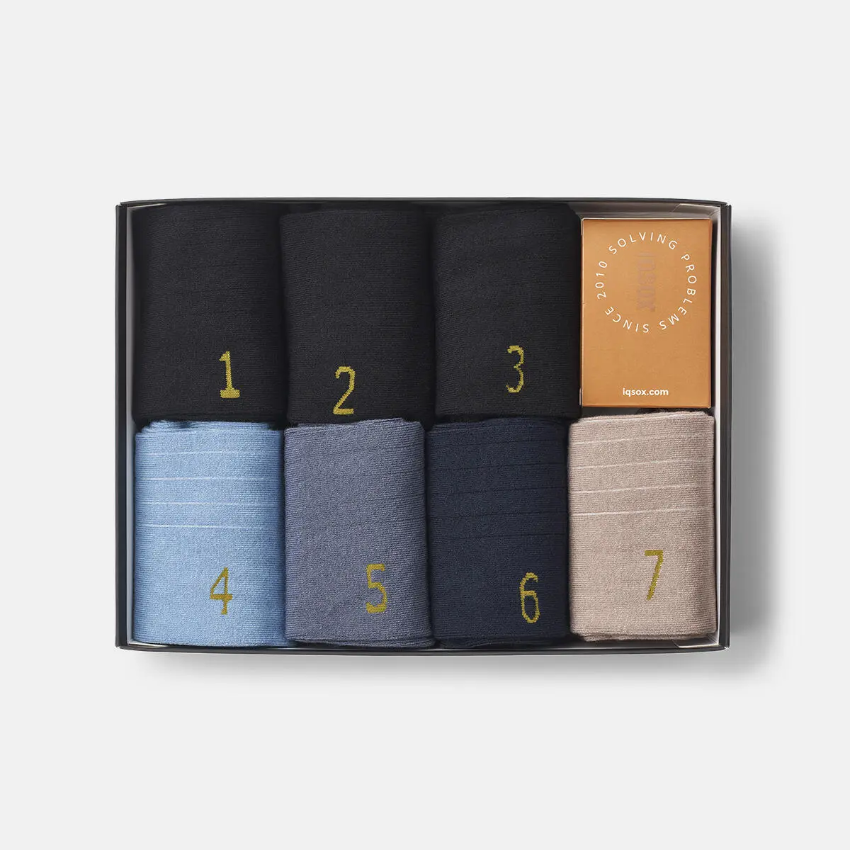Med denna "Striped Edition"-låda får du de klassiska svarta strumporna, kompletterade med strumpor i fyra olika toner.