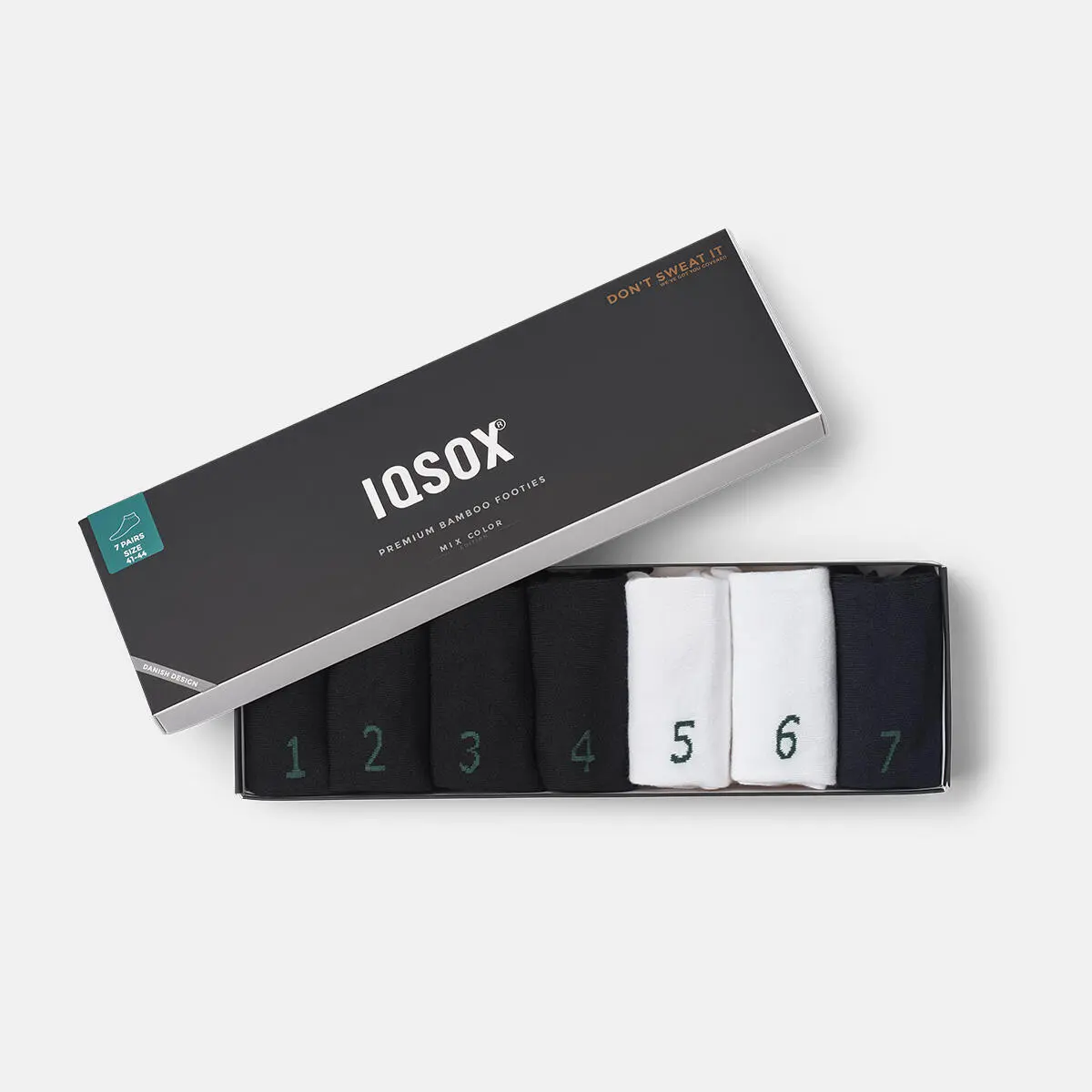 Svart/vitt/navy mix bambu footies (7 par) - IQ SOX