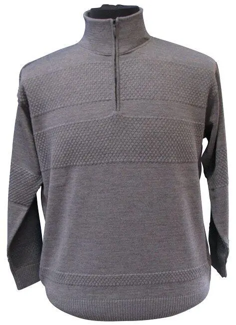 En härlig och lätt polo-tröja för herr med hög hals och dragkedja i halsen. Det är en fin tröja i en kolgrå färg. Ribbad kant på ärmarna och nertill. Tröjan har "sjömansmönster".