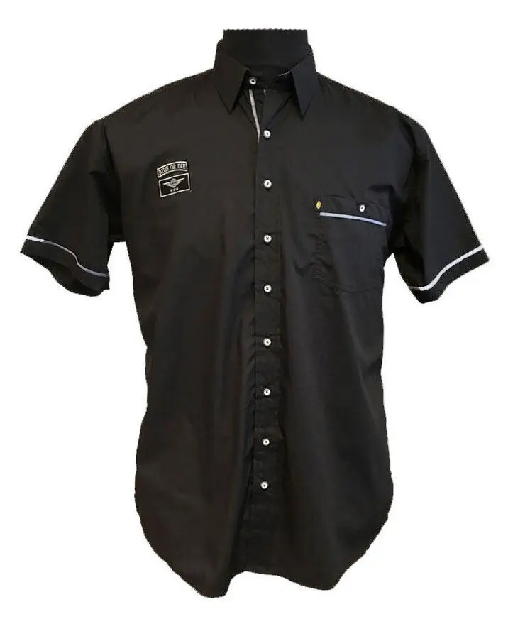 Kamro skjorta med korta ärmar i stora storlekar. Bomullsmaterialet har fått en ytbehandling som ger det en lätt blank yta.